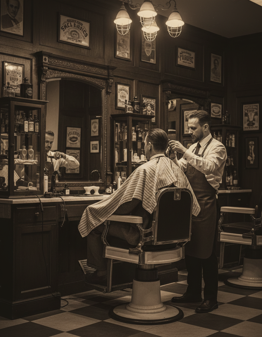 The nostalgic scent of a 1920s barbershop — hair tonic, pomade, and warm shaving cream.